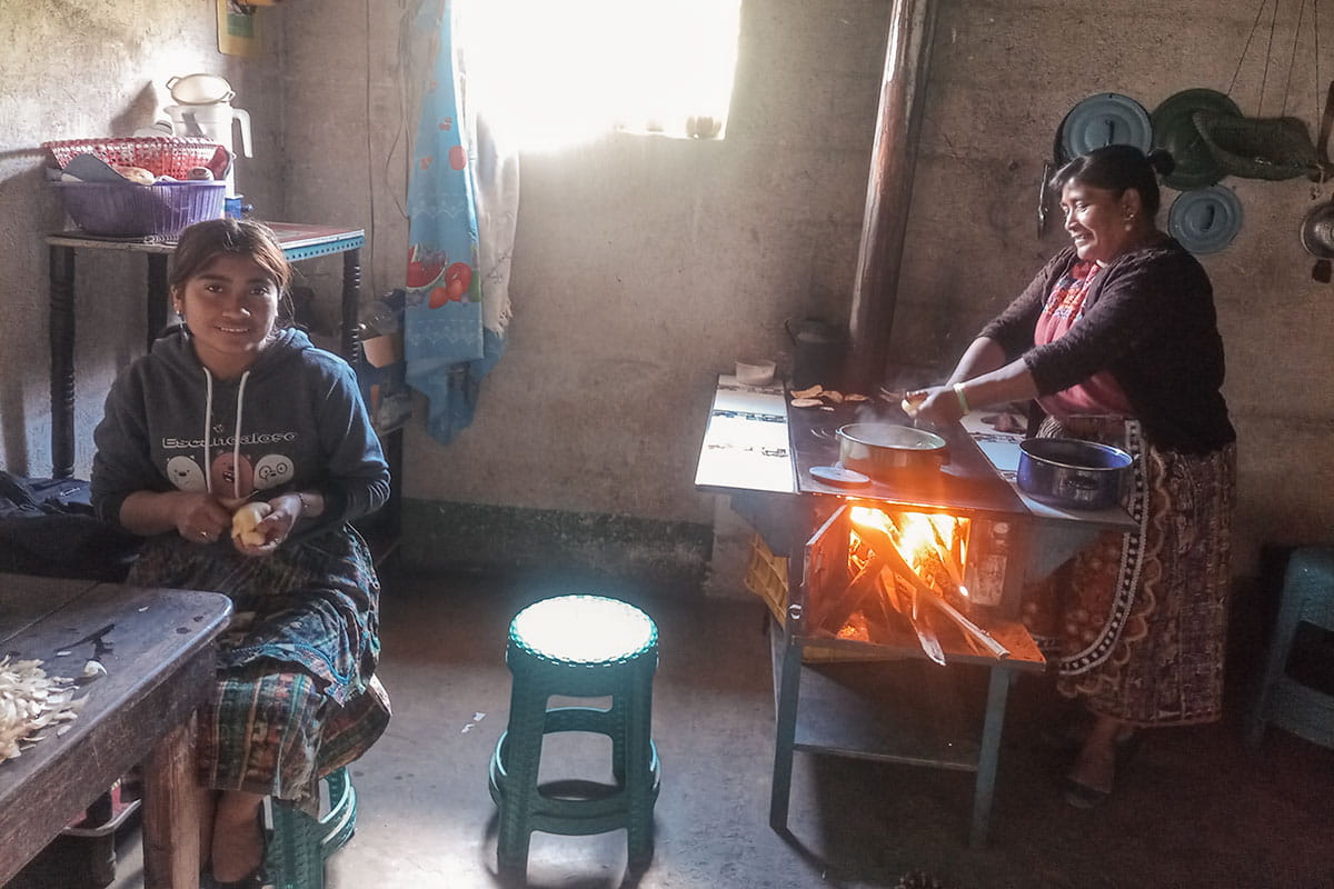 María Alexandra (left), who has four siblings, helps her mother Maria with house chores each day, while her father works in agriculture.